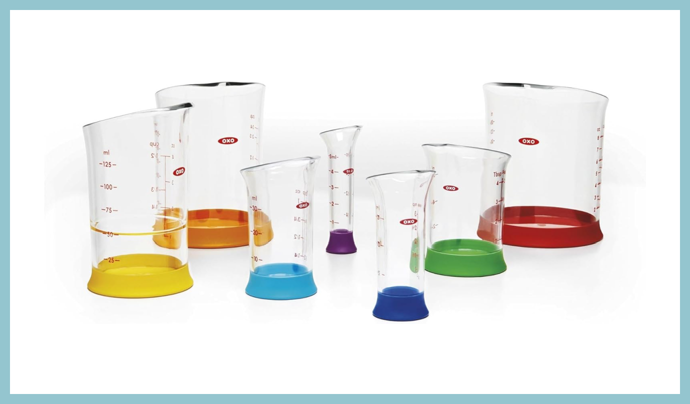 Where has this measuring cup set been all my life? The cups range from 1 teaspoon to 1 cup, they stick to the counter for fewer messes, and they stack for easy storage. Plus the beaker design makes me feel like a mad scientist every time I cook!