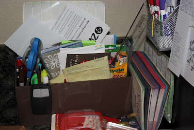 7. Coupons: Instead of leaving the sunday paper lying around till I get to it, I take the coupon inserts out and file them here till it’s clipping time. Then I can throw the rest of the paper away {yes, I get it just for coupons}.