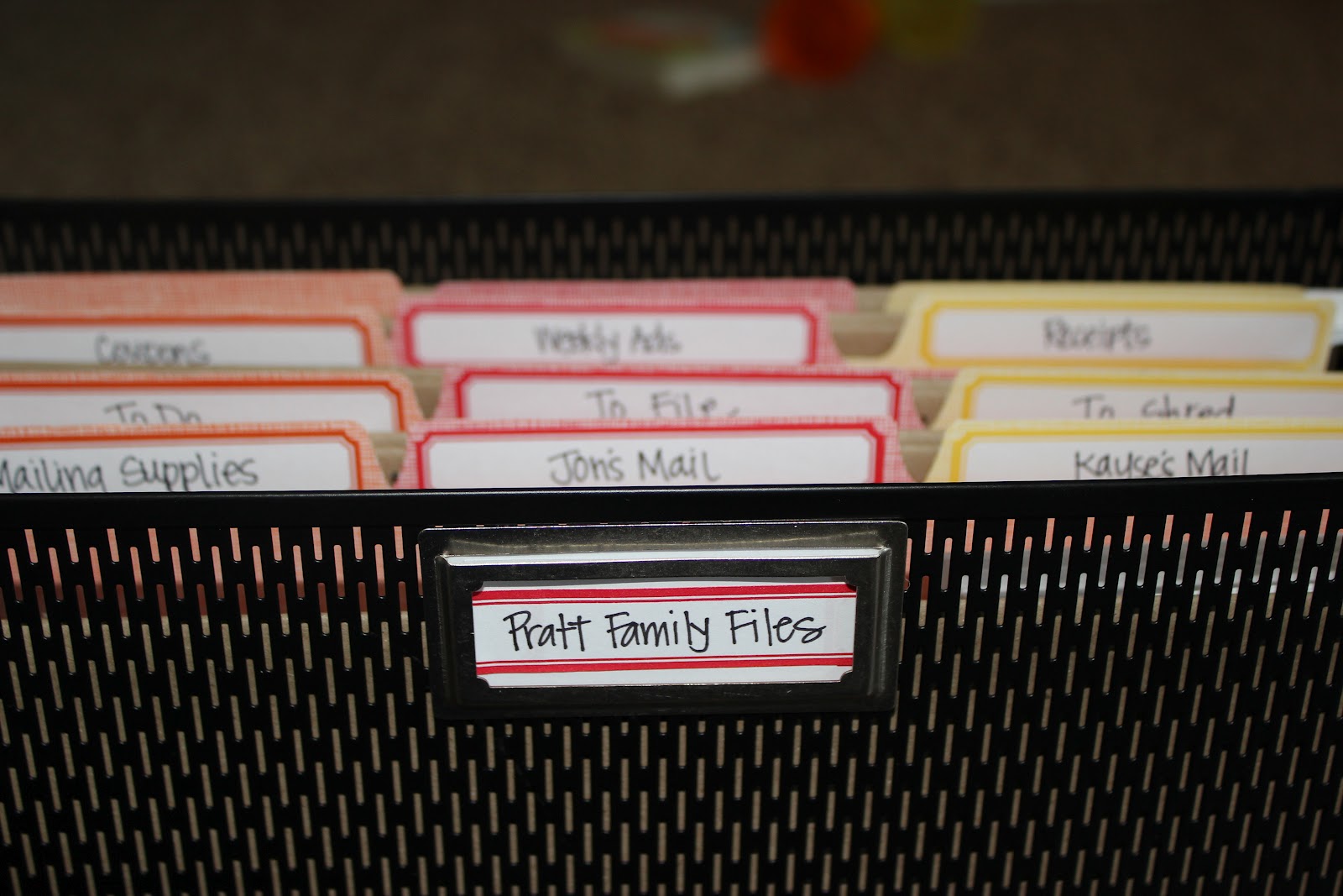I absolutely love this system! First of all, because it WORKS! It is an easy place for me to quickly sort things, and really and truly eliminates the paper clutter that had overtaken our kitchen. Secondly, it encourages me to actually sort through the paper as it comes in. Since there is a place to put it all, I don’t put off going through the mail and other papers like I used to. And lastly, it’s pretty. 🙂 The reds, oranges, and yellows match our kitchen colors, and the black matches the granite and blends in on the counter. I’m a happy camper with my new filing system! Paper clutter, be gone! 🙂