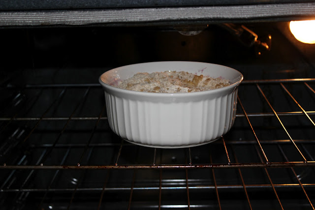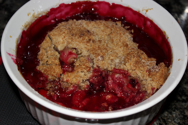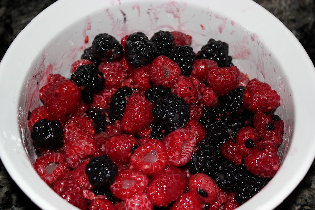 1. Wash and combine 2-3 cups of fresh berries. (I used raspberries and blackberries.) You could use frozen berries too, just rinse and thaw them first. Place in small casserole dish.